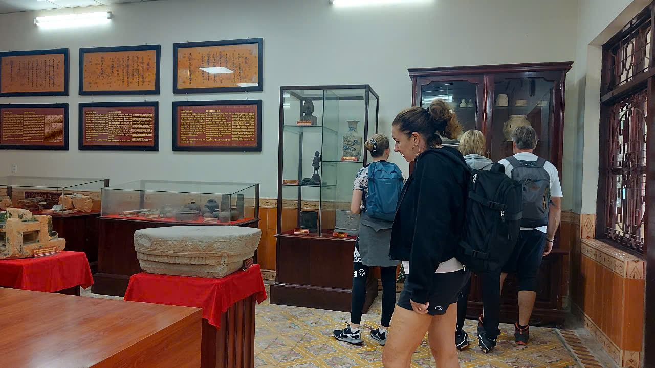 Du khách tham quan tại nhà trưng bày hiện vật khu di tích Yên Tử