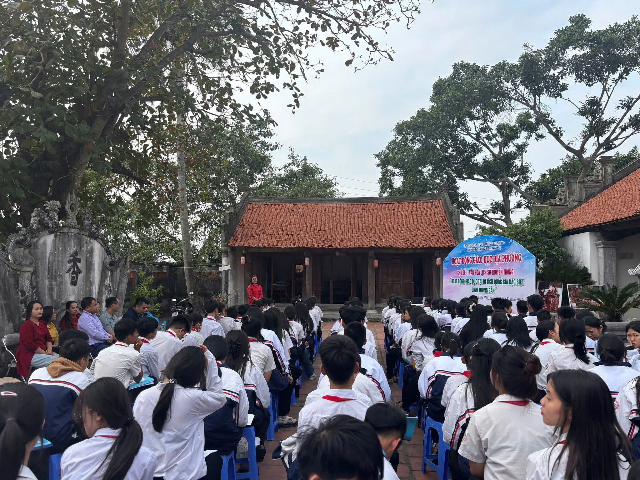 Học sinh học ngoại khóa, tìm hiểu lịch sử địa phương tại đình Trung Bản khu di tích Bạch Đằng