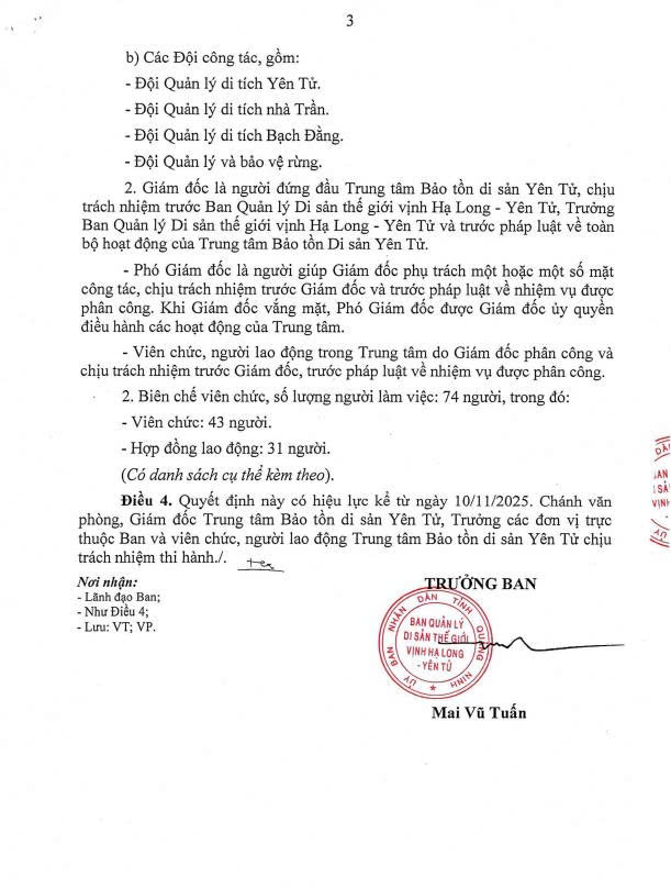 TRỰC THUỘC BAN QUẢN LÝ DI SẢN THẾ GIỚI VỊNH HẠ LONG - YÊN TỬ
